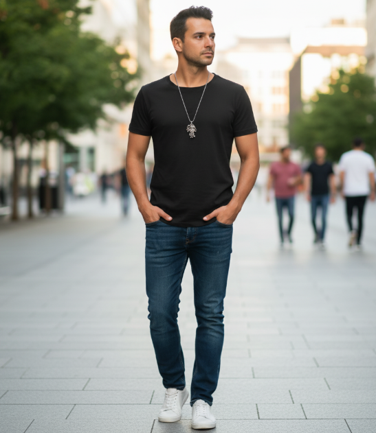 This 5 Mukhi Standing Hanumanji Pendant with Chain is a finely crafted symbol of protection and strength. Featuring Hanumanji in a standing posture with five distinct faces, it represents courage, devotion, and spiritual power. The pendant is designed to be worn comfortably with the included durable chain, making it an ideal accessory for daily wear or special occasions. Perfect for those seeking energetic balance and divine guidance in their lives.